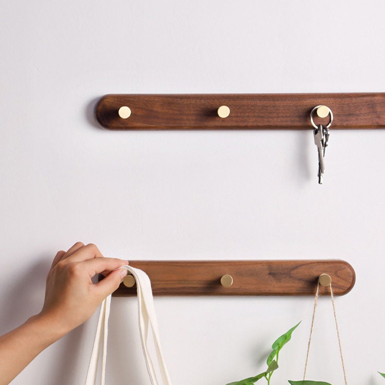 🐌 Natural solid wood key holder, wall-mounted key holder, for the key organizer, wood cloth hanger, cloth hooks, wood metal hooks, and unique hooks